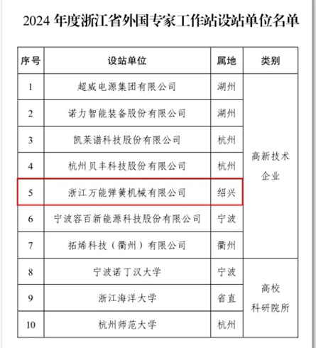 在全球化與科技創(chuàng)新的驅(qū)動下,浙江省外國專家工作站成為吸引國際高端人才、推動企業(yè)創(chuàng)新發(fā)展的重要平臺。自2020年《浙江省外國專家工作站管理辦法》實施以來,紹興市在吸引外籍專家方面取得了顯著成績。截至目前,紹興市已有6家單位獲批為省級外國專家工作站,位居全省前列。 2024年,浙江萬能彈簧機械有限公司榮...